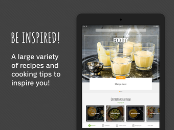 FOOBY เป็นแอปพลิเคชันสไตล์ไลฟ์สไตล์ที่ให้คุณได้รับสูตรอาหารและเคล็ดลับการทำอาหารที่หลากหลายเพื่อให้คุณได้รับแรงบันดาลใจ มันเป็นสมุดสูตรส่วนตัวของคุณที่ช่วยคุณค้นหาสูตรอาหารที่เหมาะสมสำหรับทุกโอกาสพร้อมกับรายการสินค้าที่ปรับตัวให้เหมาะสมกับจำนวนคน ด้วยตัวเลือกฟิลเตอร์หลายรูปแบบคุณสามารถกรองการค้นหาตามส่วนประกอบที่เฉพาะเจาะจงหรือความต้องการทางอาหารได้ แอปยังมีเคล็ดลับการทำอาหาร รูปภาพ และวิดีโอเพื่อช่วยคุณทำอาหารเหมือนมืออาชีพ